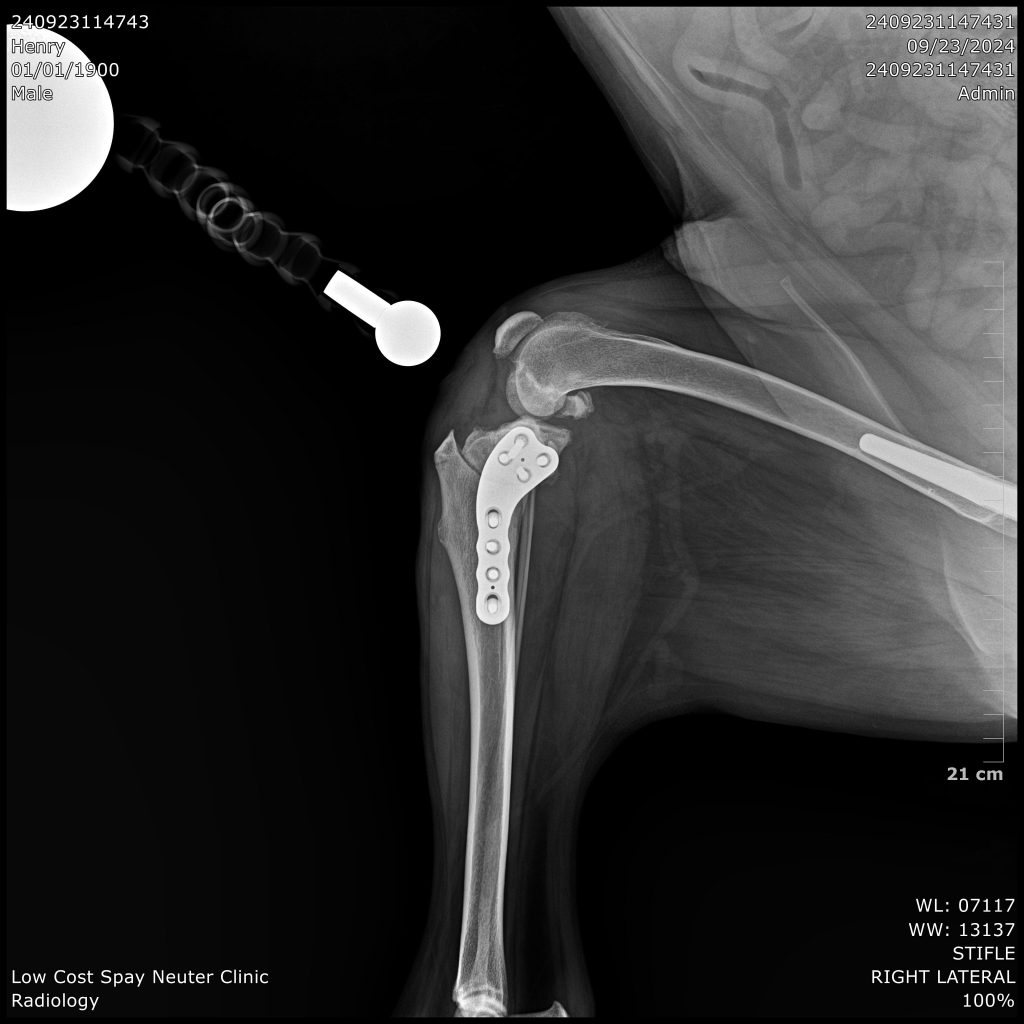 Fracture repair in cats and dogs typically involves surgical stabilization of the broken bone fragments to promote healing. Depending on the fracture type, location, age and body weight various techniques may be used. Proper immobilization, pain management, and rehabilitation are crucial for a successful recovery.