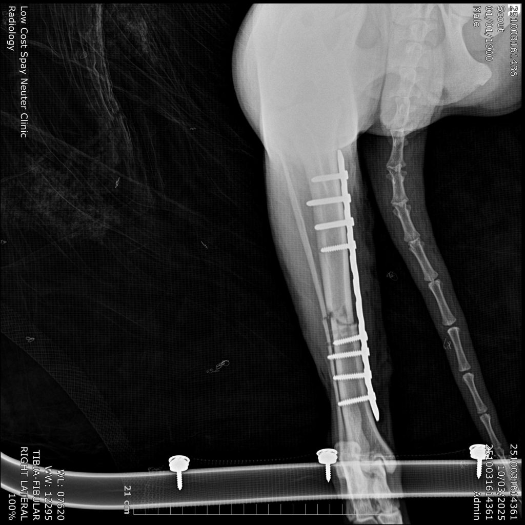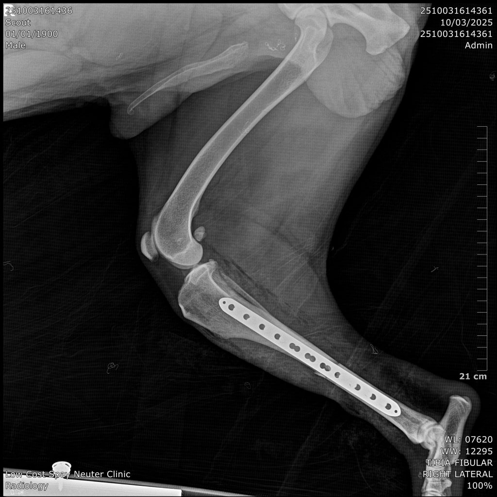 TPLO (Tibial Plateau Leveling Osteotomy) surgery stabilizes a dog’s knee joint by altering the angle of the tibial plateau (the top of the shinbone), effectively neutralizing the forces that cause instability when the CCL is damaged. Instead of attempting to repair the torn ligament, TPLO stabilizes the joint by changing the way the femur (thigh bone) and tibia interact during weight-bearing, eliminating the need for a functional CCL.